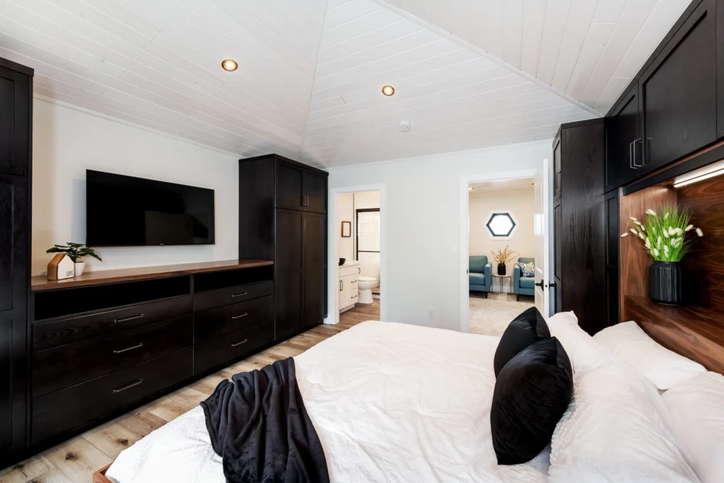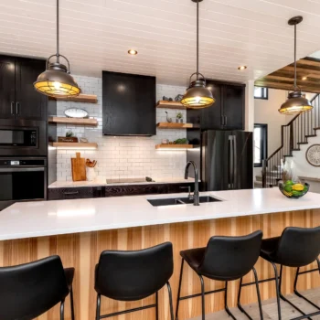 The 2021 Lottery Home provides a level of luxury with a touch of natural elements throughout. Playing with lights and darks in the same space keeps a neutral palette while allowing you to warm up or cool down the room. Best of all, the double-waterfall edge quartz countertops draw your attention to the kitchen with an 11’ island seating area.
