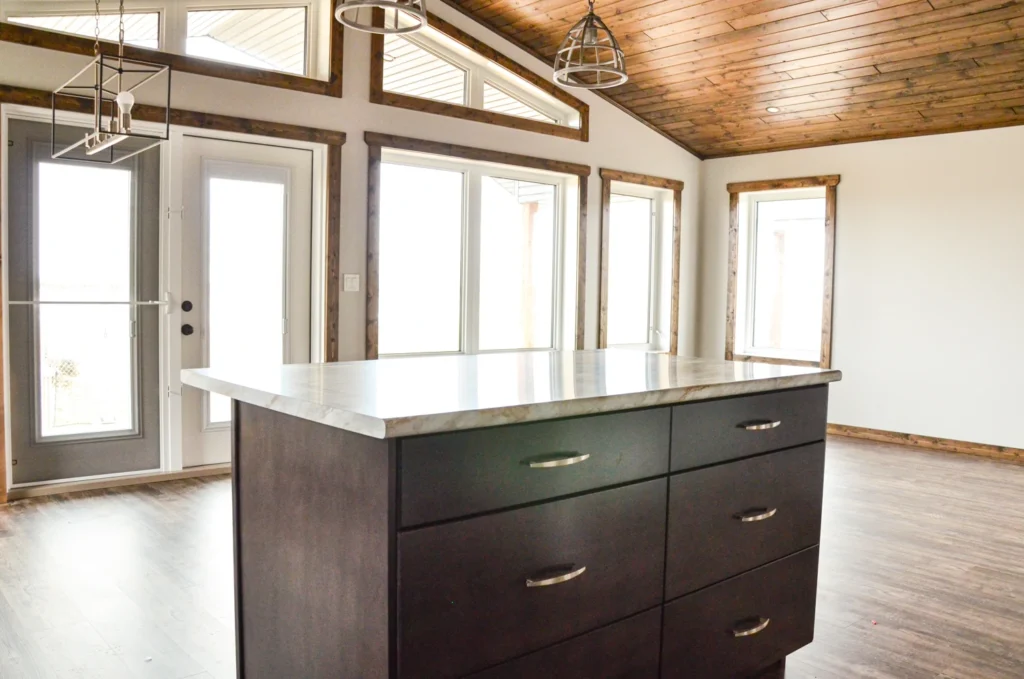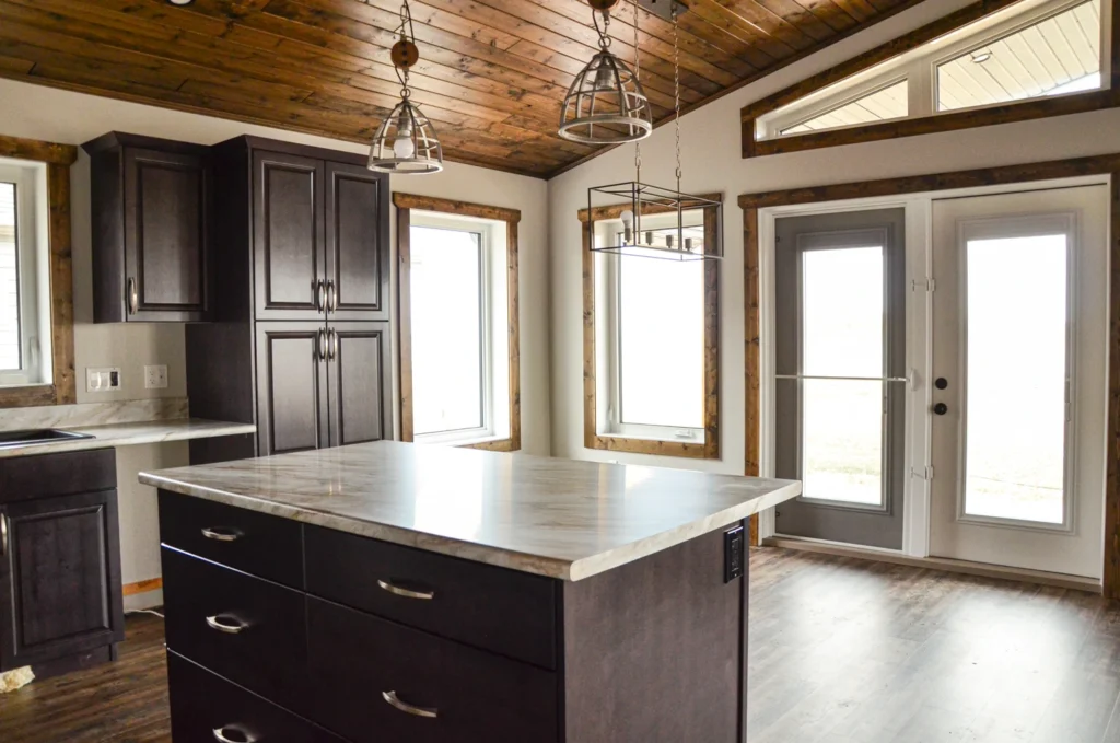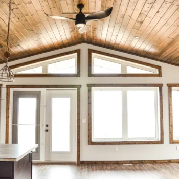 A spinoff of the “Smoothstone”, the Booth cottage is at home in nature. Its signature covered deck sells itself, allowing you to enjoy your vacation home while taking in your surroundings.