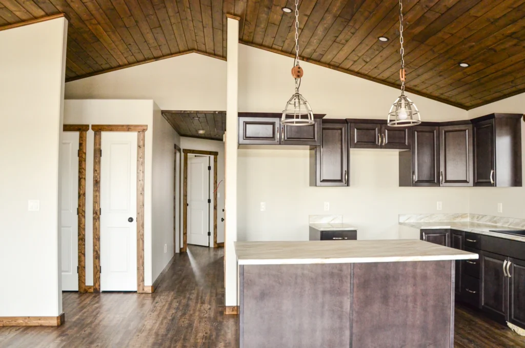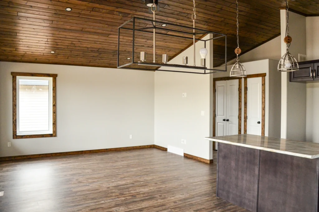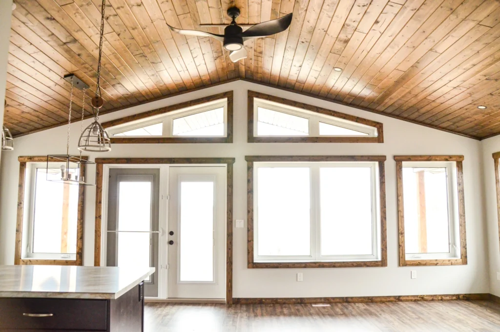 Zak’s signature expansive vaulted pine ceiling in Jacobean