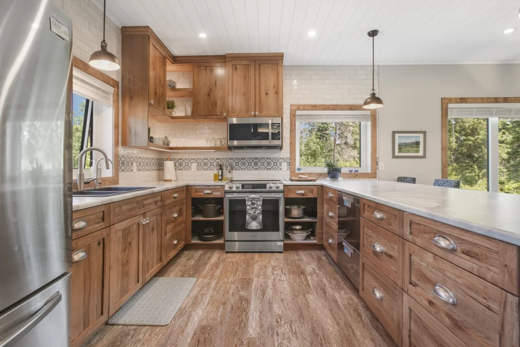 Meet Brightsand, one of our recent custom site builds. The unique layout of this home was designed specifically for large gatherings, and intentionally focused on indoor-outdoor living. With an expansive covered porch featuring a screened-in option, the customers made great use of their square footprint! Going to the extra work of landscaping this year gives the home a grown-in feel, and character that can take years to accomplish.