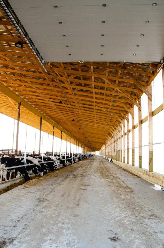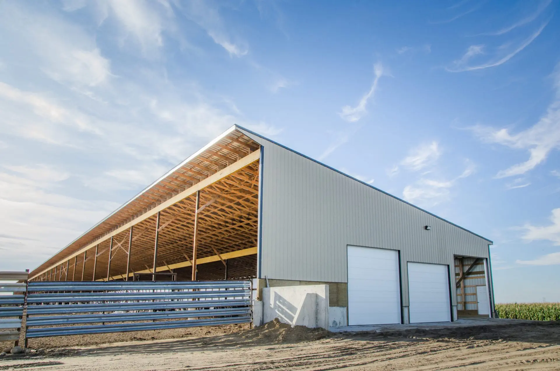 Ensure your herd is in good health and sheltered from the elements with this open-air mono-slope shelter. This large heifer barn was designed and built with animal comfort in mind. The building incorporates a blended metal-and-wood construction that’s both cost effective and durable. Engineered wood trusses and beams are designed to withstand structural loads. Metal posts and x-bracing provide additional strength to stand the test of time. This facility was designed keeping in mind the improved function and efficiency of everyday farming tasks.