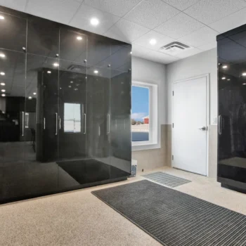 20,000 sq feet shop + 2,600 sq ft 2-level living quarters, including an office, 2 bath, kitchen, lunchroom, recreation room.