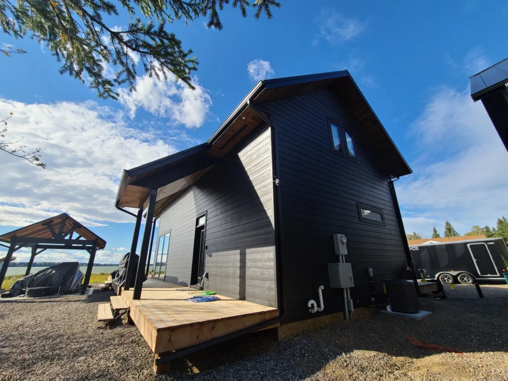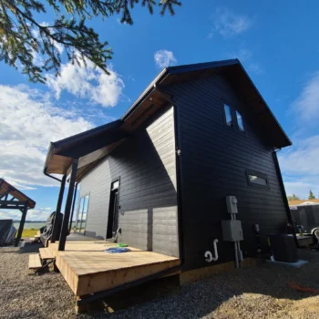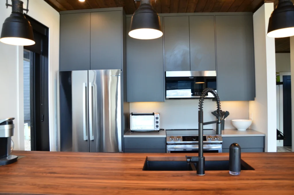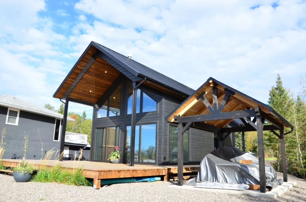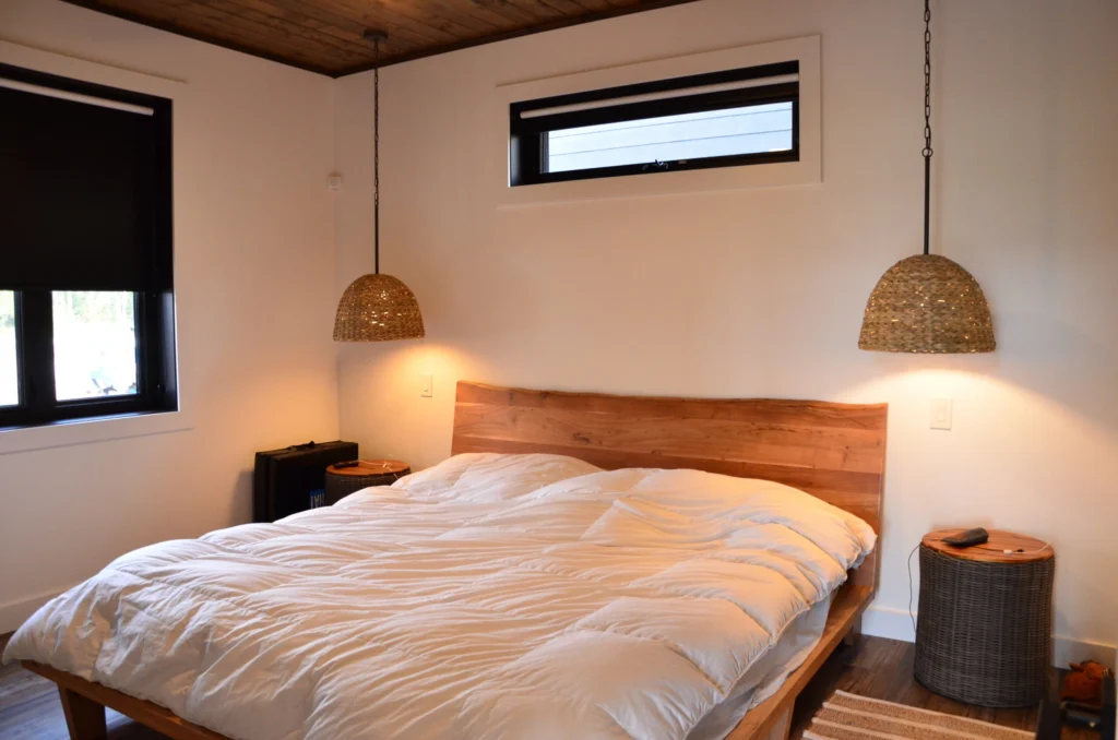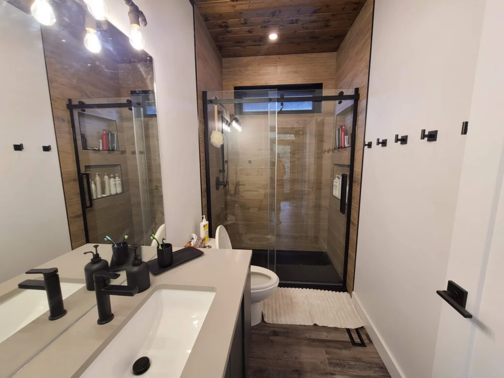 Lake views were the priority in this project, and we can see why! With a full wall of windows off the back deck you have full view of your property from the main floor to the loft. The high end finishes in this cottage deliver a modern aesthetic while keeping it casual, which is one of the most beautiful blends.
