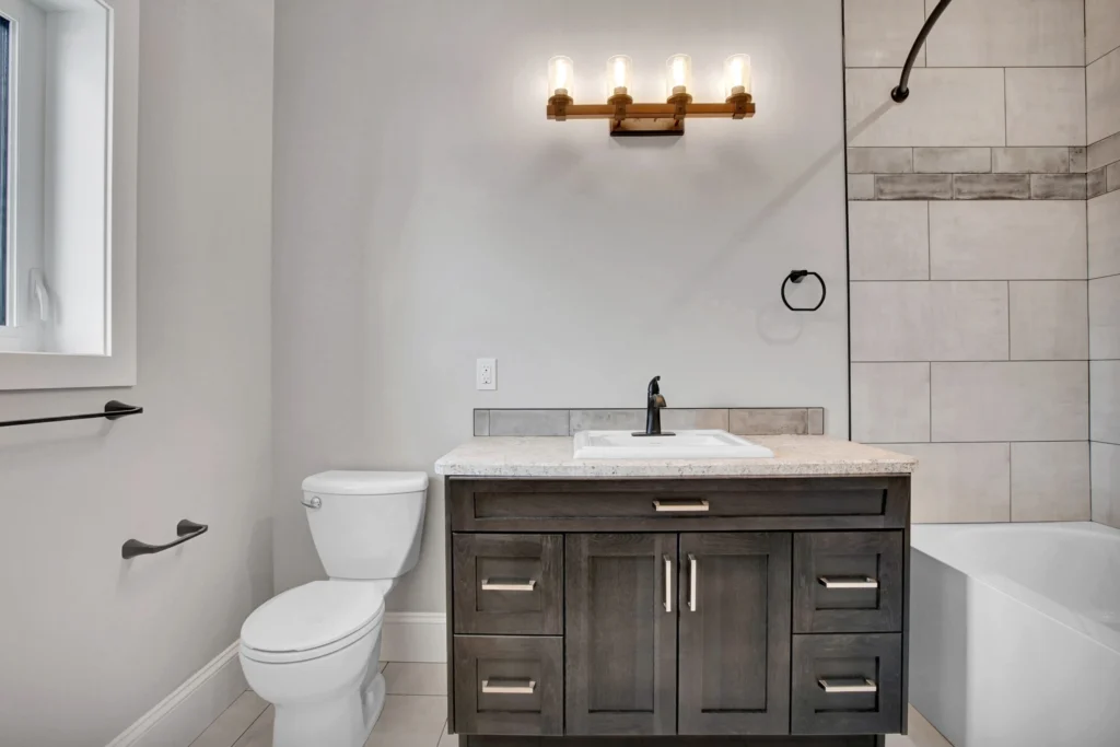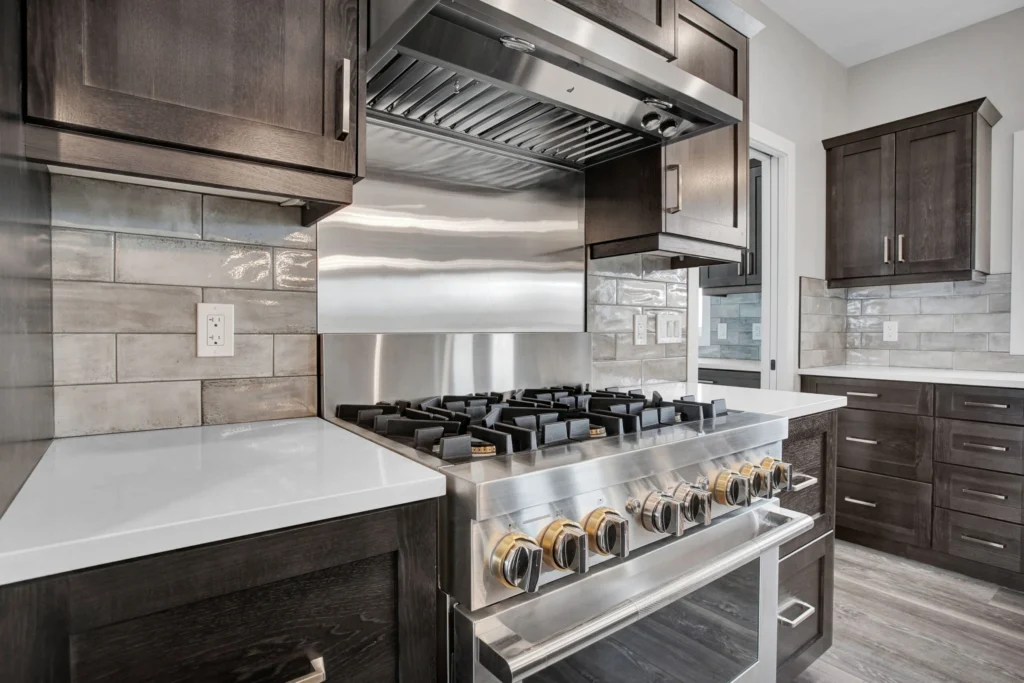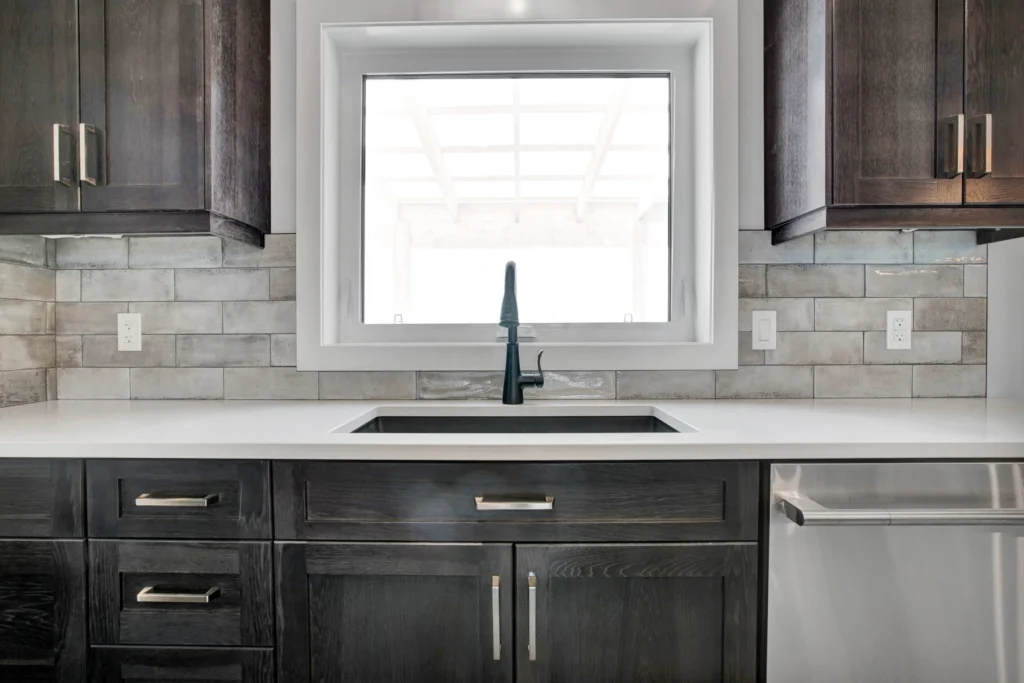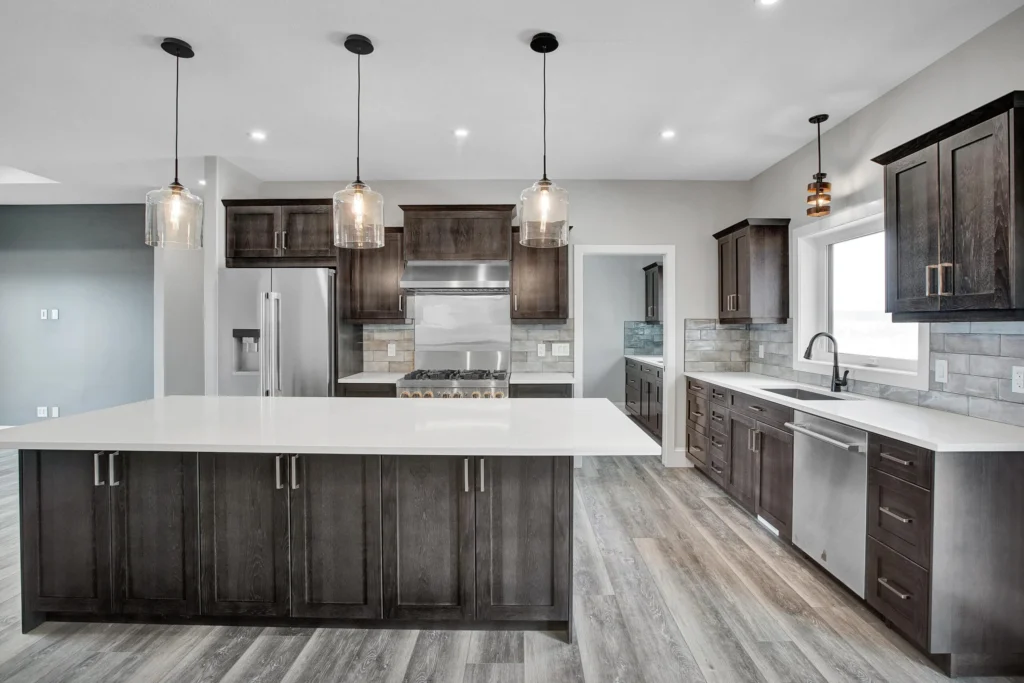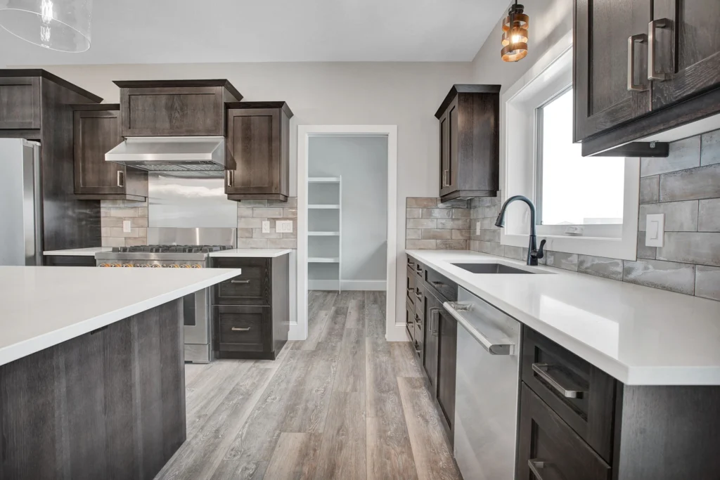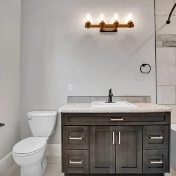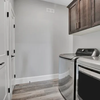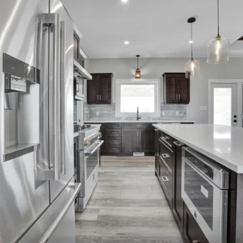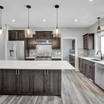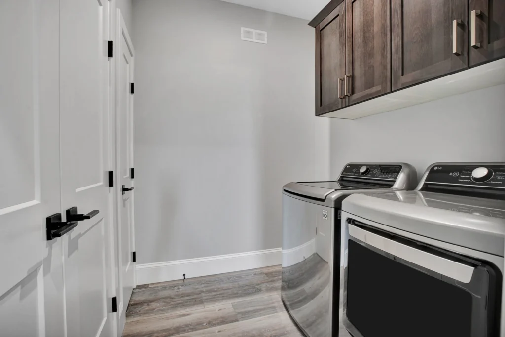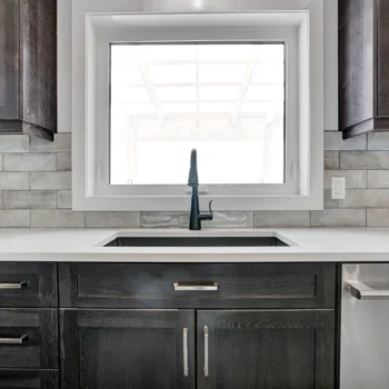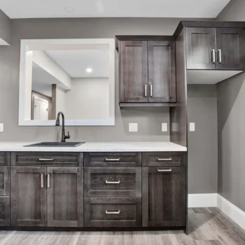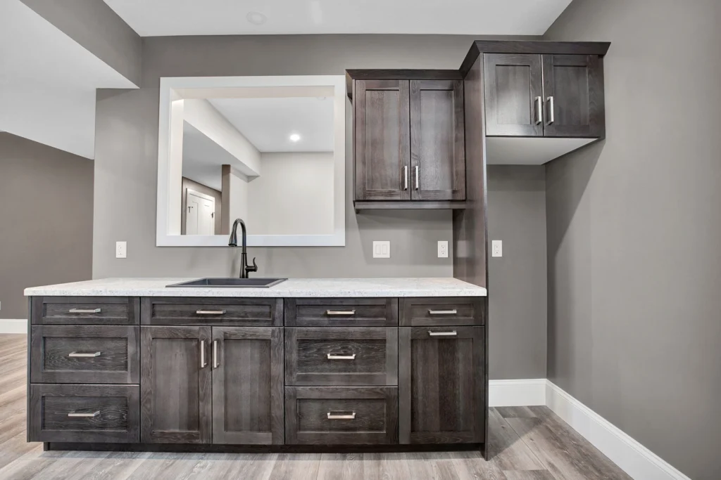 Select Hickory wood cabinetry is a timeless and durable material, and when used throughout the entire home it brings cohesion to a project. For Lemcke – Wilson we used a rich stain that made each piece a feature in its space! Customized pieces such as the mudroom bench and lockers add a personal touch to high-traffic areas and provide beauty to an often overlooked area.