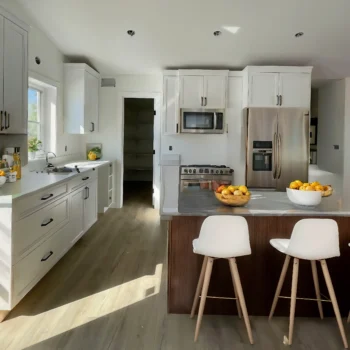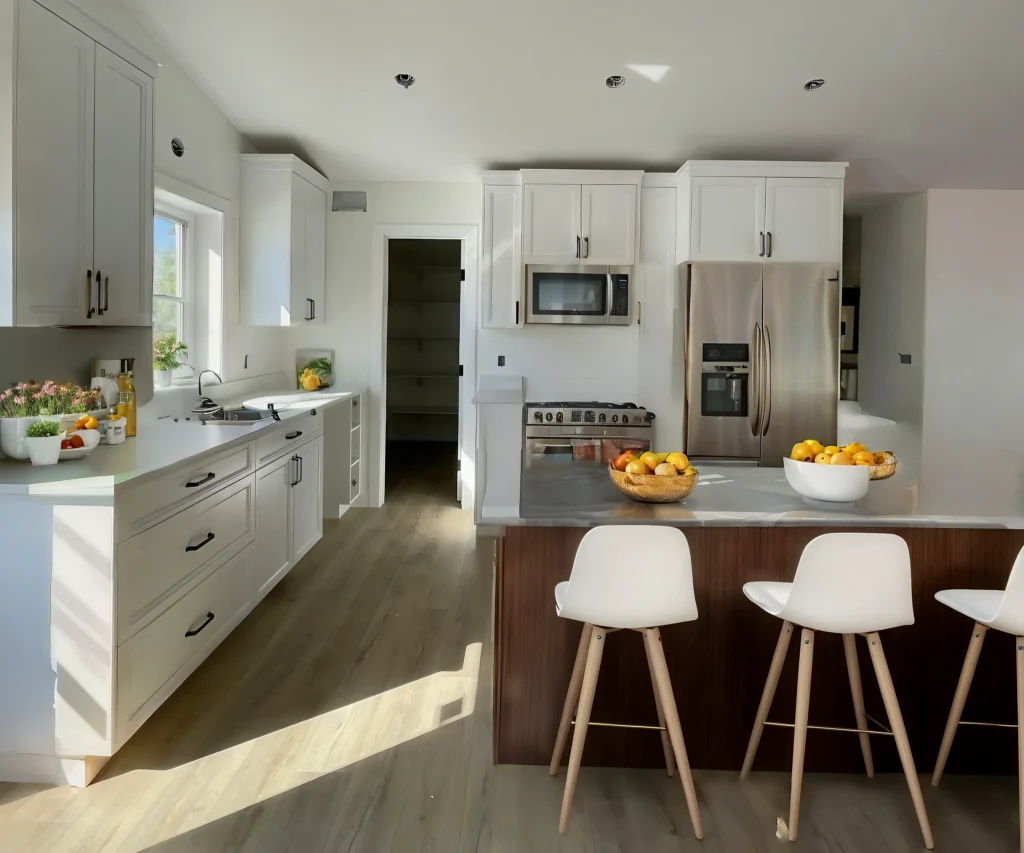• Custom cabinetry in kitchen and bathrooms