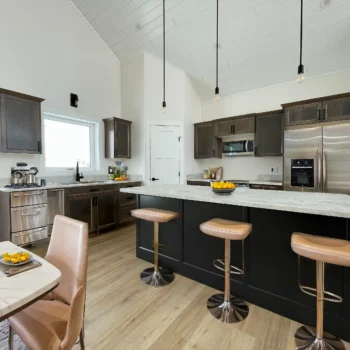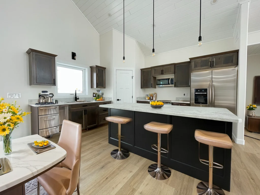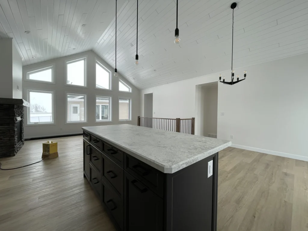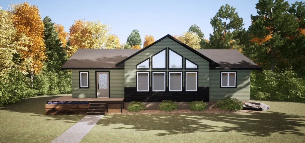 Big cottage living at a budget-friendly price, the Athabasca hits all the marks with an A-frame cottage front, signature pine vaulted ceiling, large kitchen island and a full 3 bedrooms. At 1388 sq ft you get everything on your wish list.