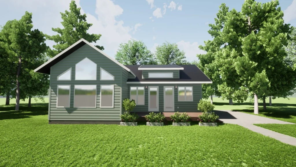 This lovely budget-friendly cottage yearns for a lakeside or forest setting. Our predesigned spec sports an open-concept with vaulted ceilings for a spacious and bright feel. With a master suite deck entrance, separate dining space and a 14’ bunkroom, the Ena provides an intimate atmosphere for families and friends alike.