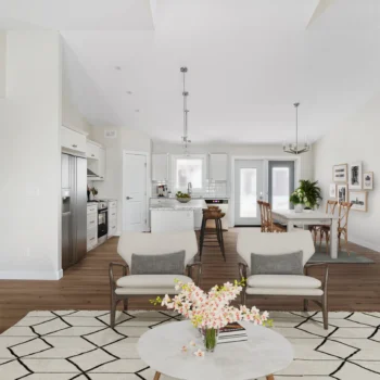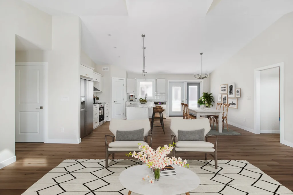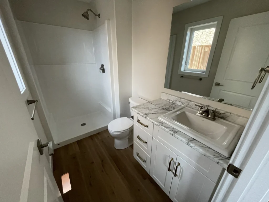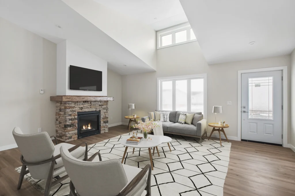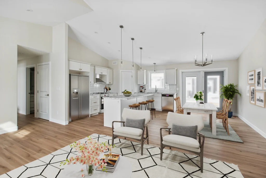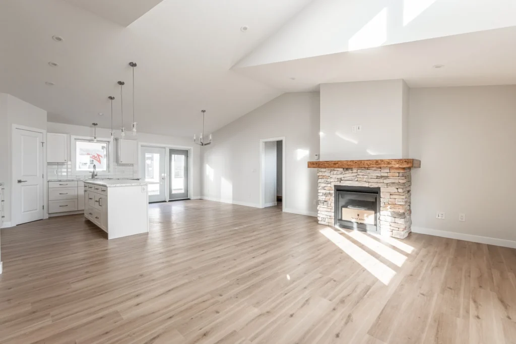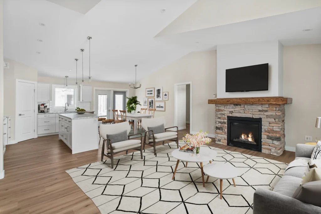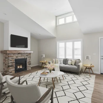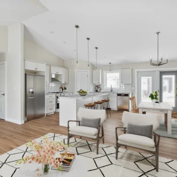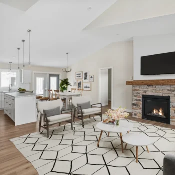 Whether a functional farmhouse or a luxury cabin, this stunning 1442sqft RTM boasts an open concept floorplan, transitioning from a gas fireplace in the living area to a 7’ island in the kitchen. With the intention of a large, covered deck, the Highrock is the ideal home for indoor-outdoor living.