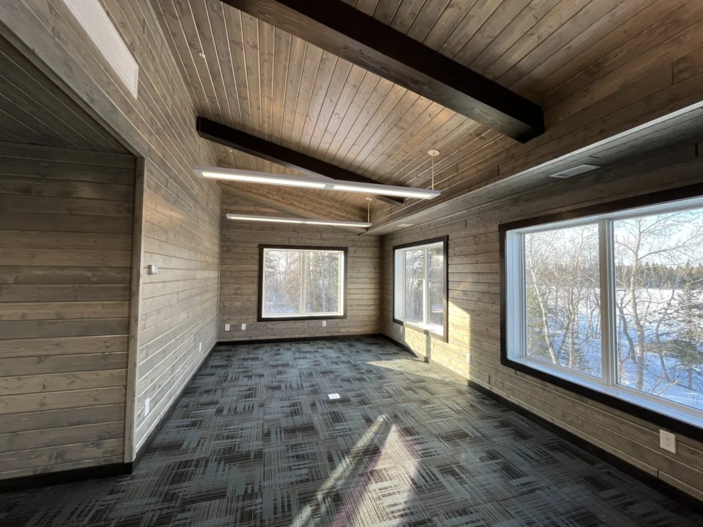 The One Arrow Cultural Lodge project was a much-anticipated project for our team! Its purpose was to create a gathering space for youth and community functions. With the specific location close to cabins and communal outdoor gathering areas, a central building for events was needed. The highlight was working with the One Arrow leadership team to bring their vision of a community gathering space to a reality, and seeing their reaction when it was complete.