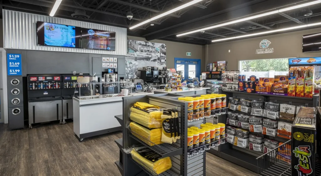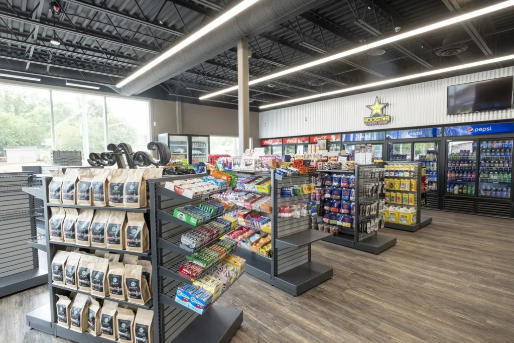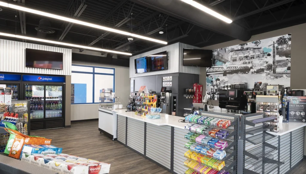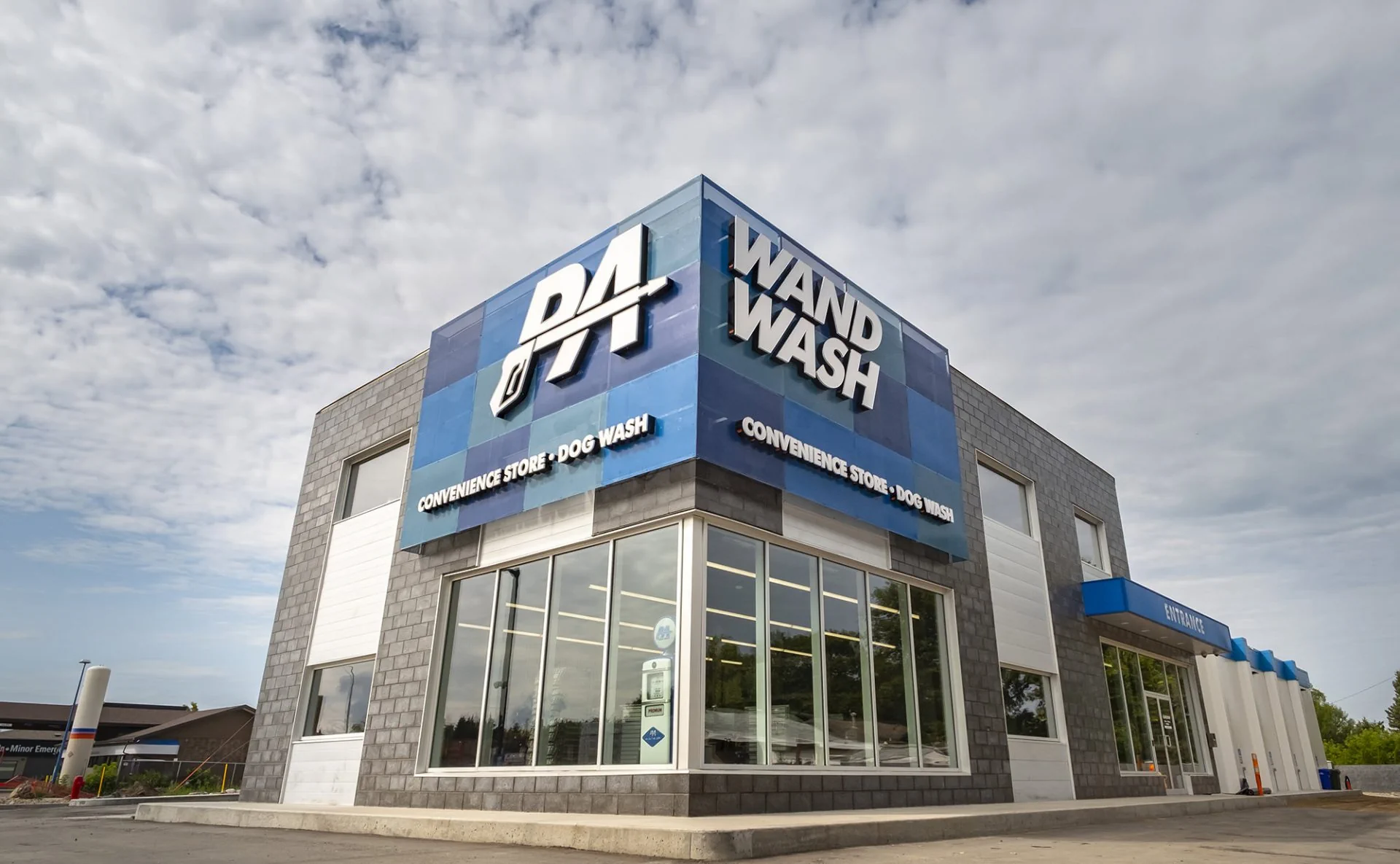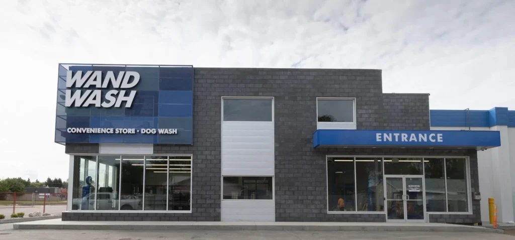 PA Wand Wash was designed to stand out among local businesses. The design-build plan called for high-end masonry, perforated metal finishes and prominent curtain wall glazing (enormous corner windows) for the convenience store build-out.
