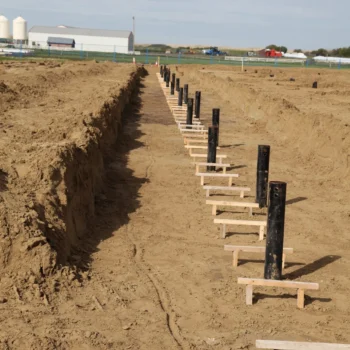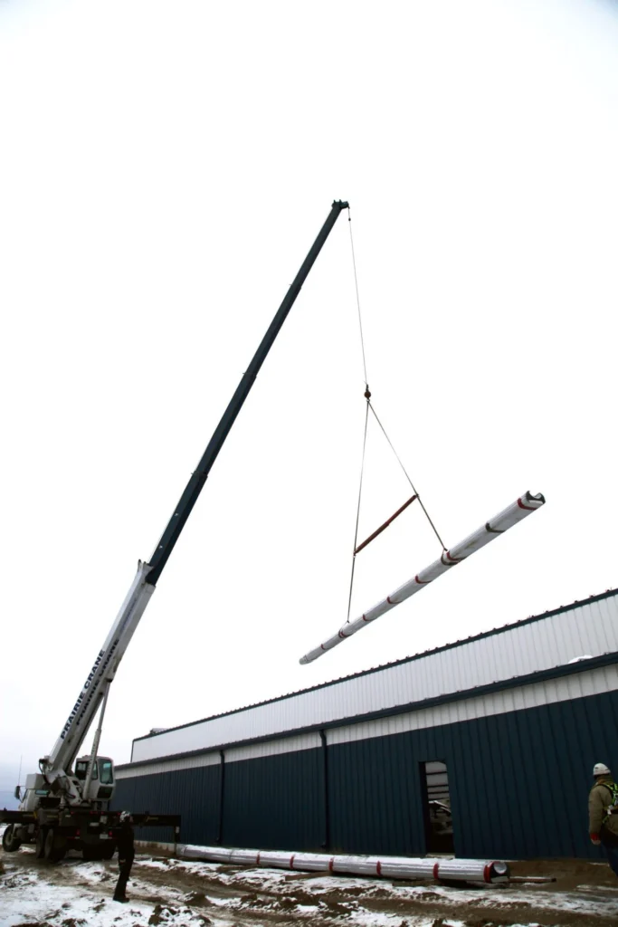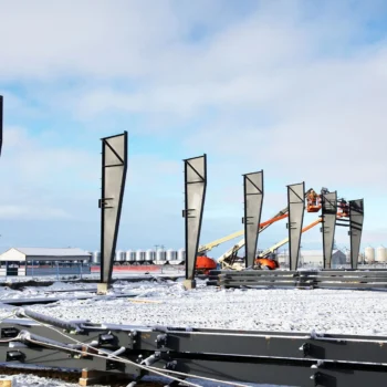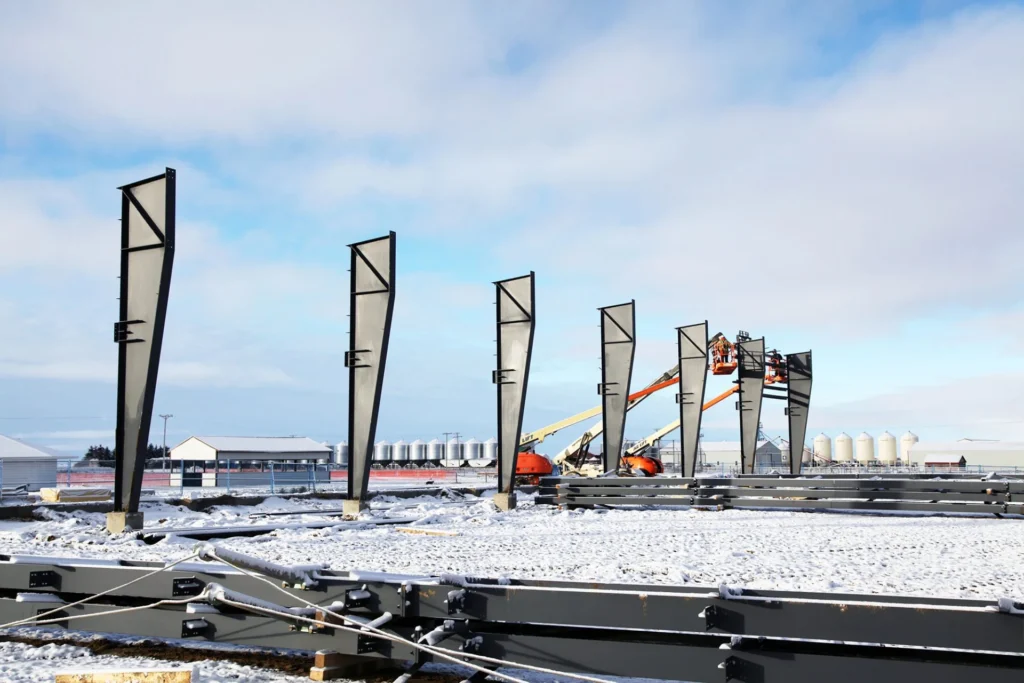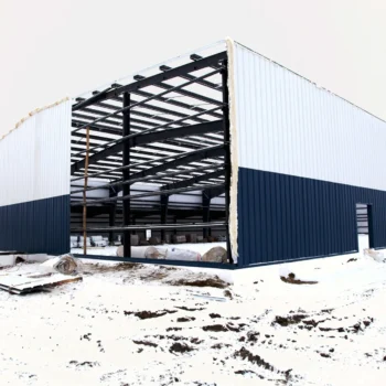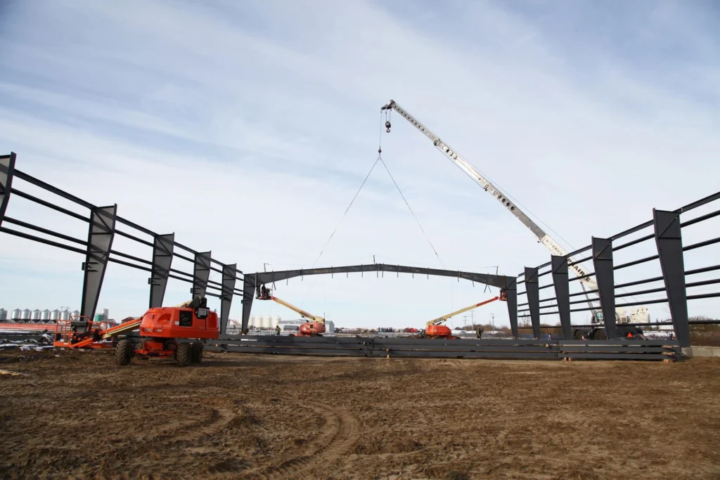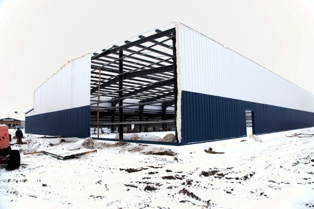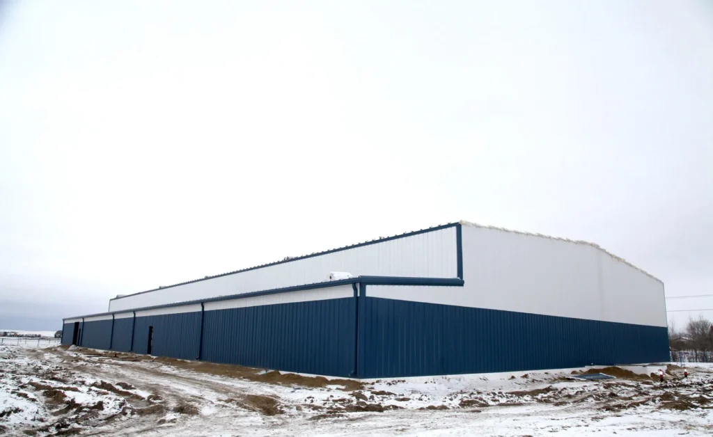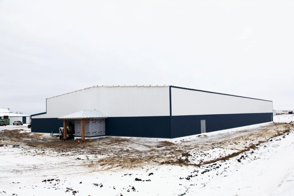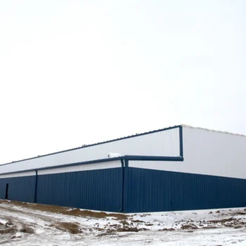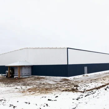 This arena was built after a fire destroyed the original one in the community. Made of pre-engineered steel, this structure should stand for generations to come. Engineered screw piles and concrete-grade beams are used for solid structural columns and beams. A vestibule entrance to the large front building lobby keeps out the cold in winter.