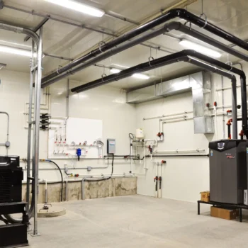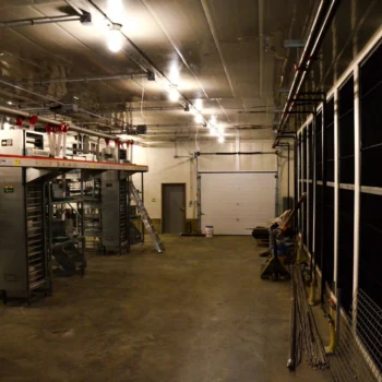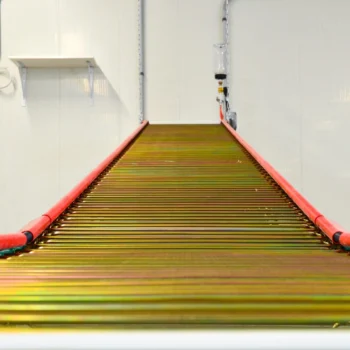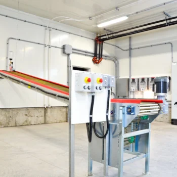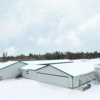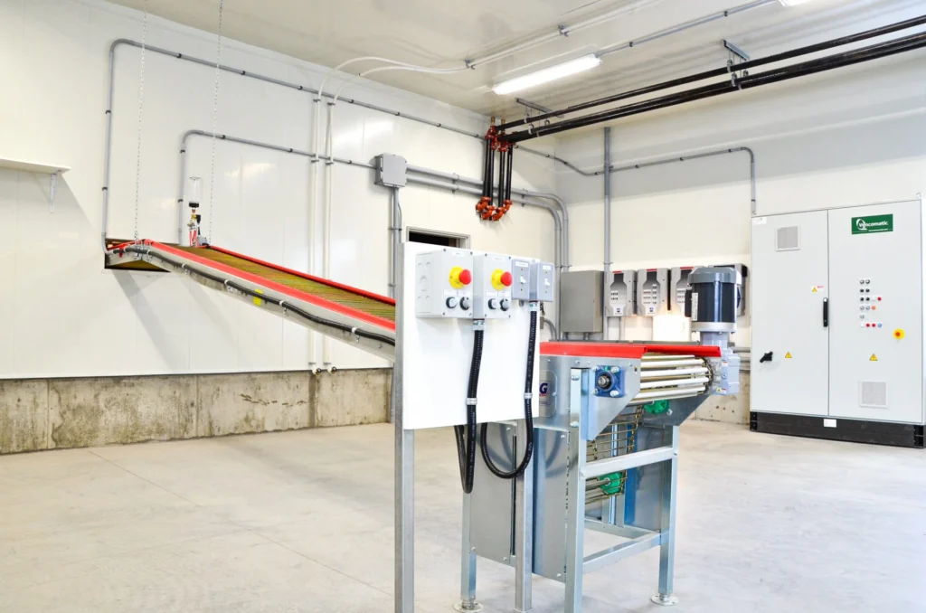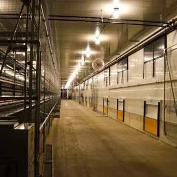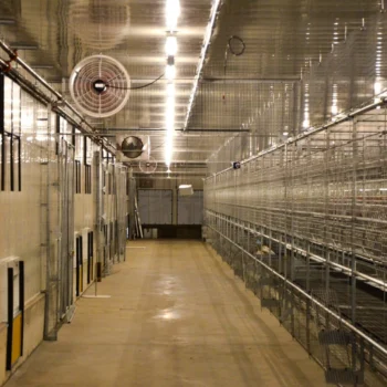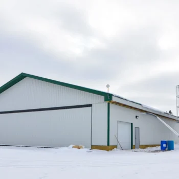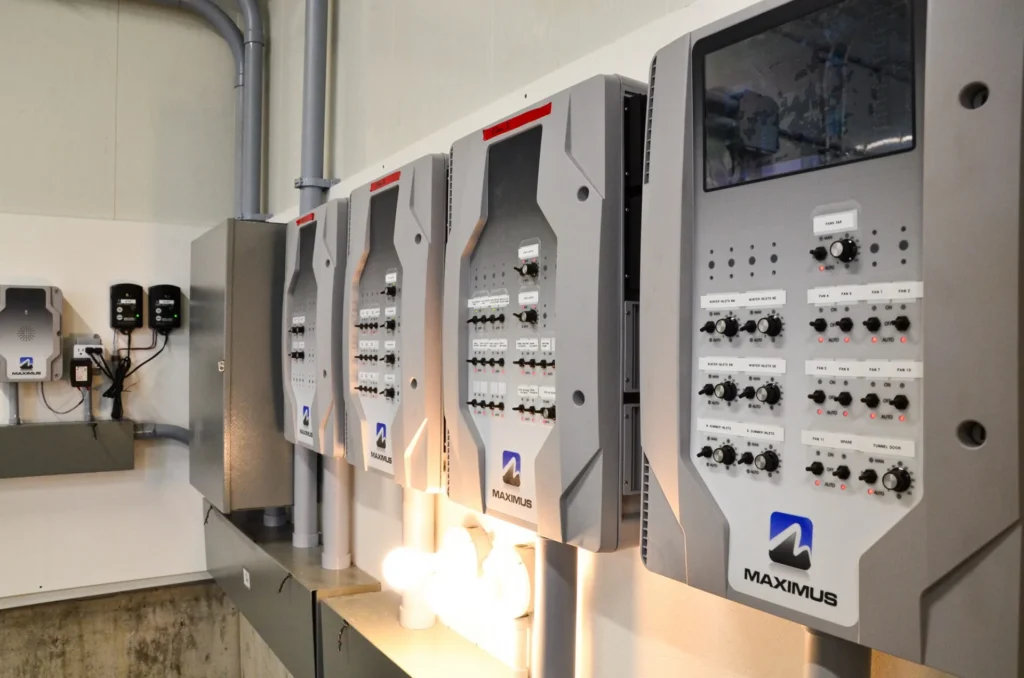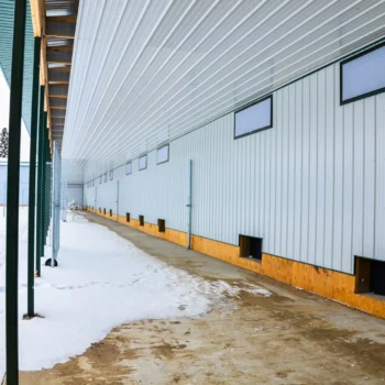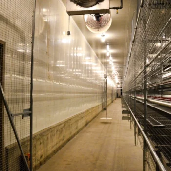 Front gable end is a power lift hydraulic door for tunnel ventilation