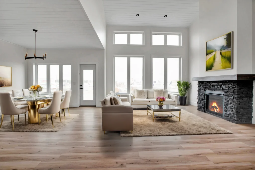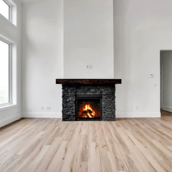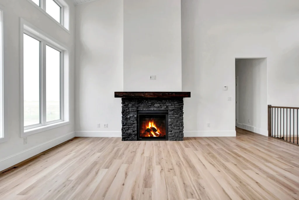 Gas fireplace with custom mantle and stone hearth