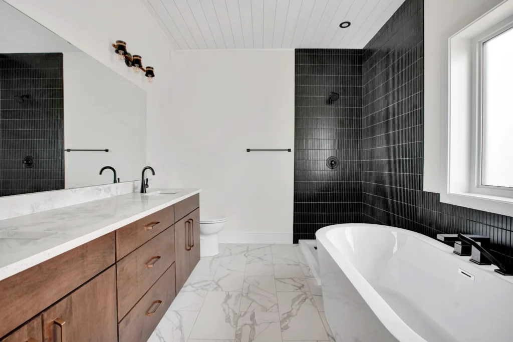 Double vanity ensuite, fit with separate walk-in shower and soaker tub