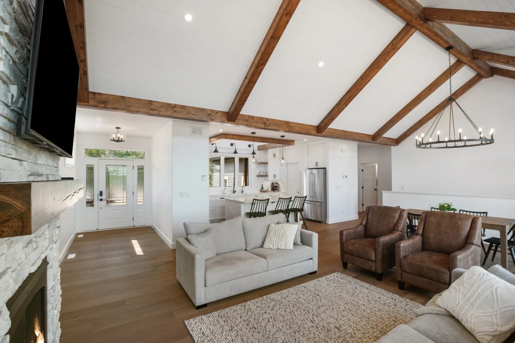 The Rutley. This custom RTM was designed using an existing floorplan, and modified to fit the customer’s needs. The primary suite is beautifully situated on the main floor, intentionally leaving plenty of room in the walkout basement for additional bedrooms. Placing the kitchen in the center of the floorplan makes it the heart of the home, and bumping it out provides proper flow to the open concept living area.