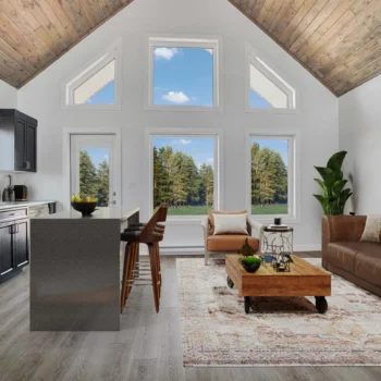 A 551 square foot cottage that meets zoning requirements. Fit with 1 bedroom plus 1 bathroom, with a storage loft.