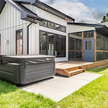• Outdoor entertainment deck and patio with a 6-person Jacuzzi® hot tub