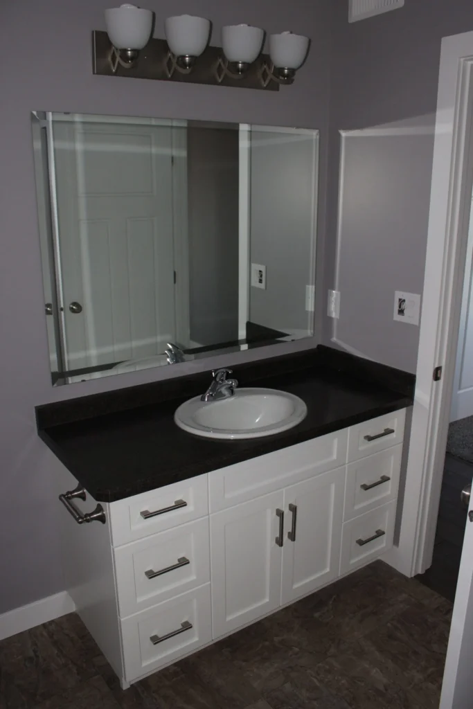 Custom cabinetry in kitchen and bathrooms