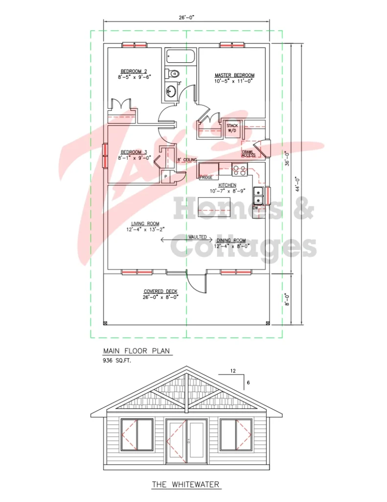 A full 3 bedrooms in a cottage under 1000 square feet. Use the existing floor plan or meet with one of our designers to customize a plan perfect for you!