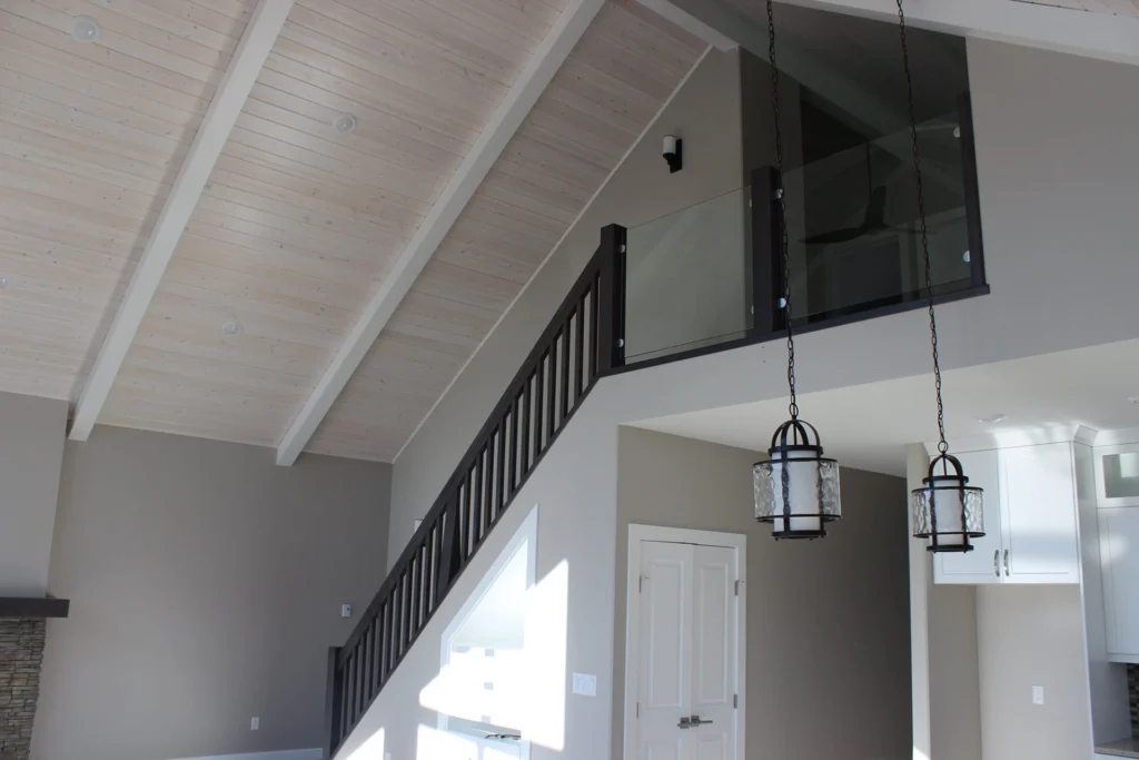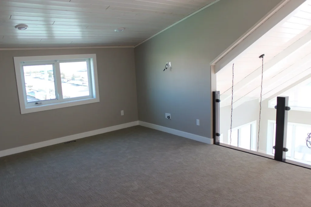 • Carpeted loft with glass guardrails on balcony look out over the great room