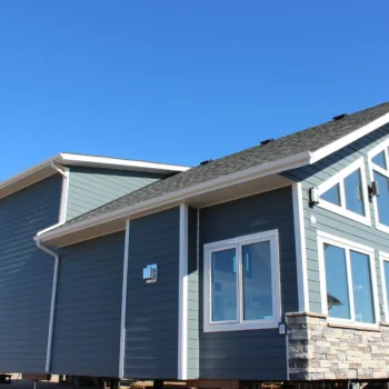 This custom pre-built home offers everything you need in a home building plan—covered deck, large great room and laundry room with plenty of storage on the main floor.
